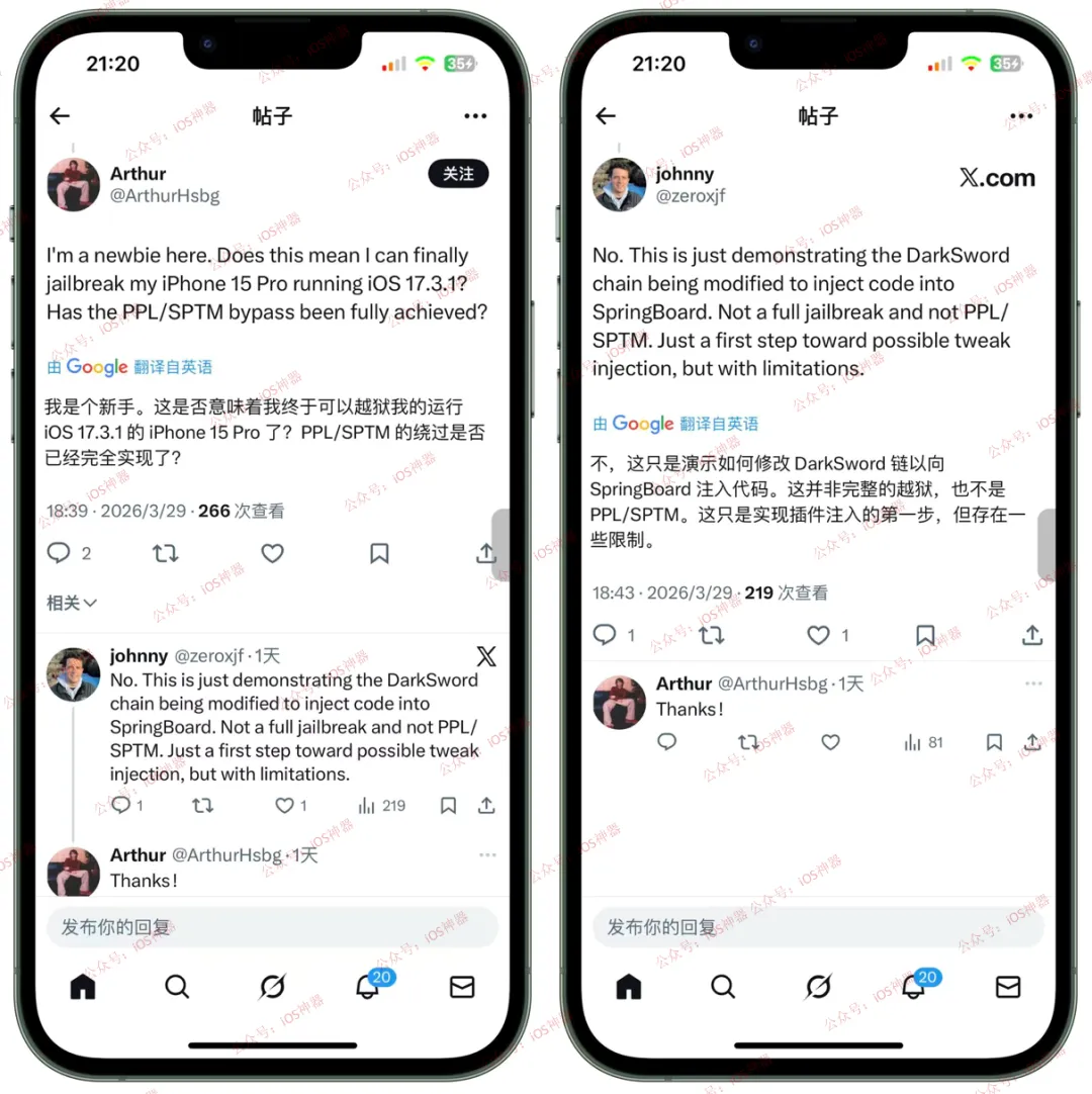 opa334 发布DarkSword 漏洞:重磅!opa334 新漏洞成功利用,即将支持新系统