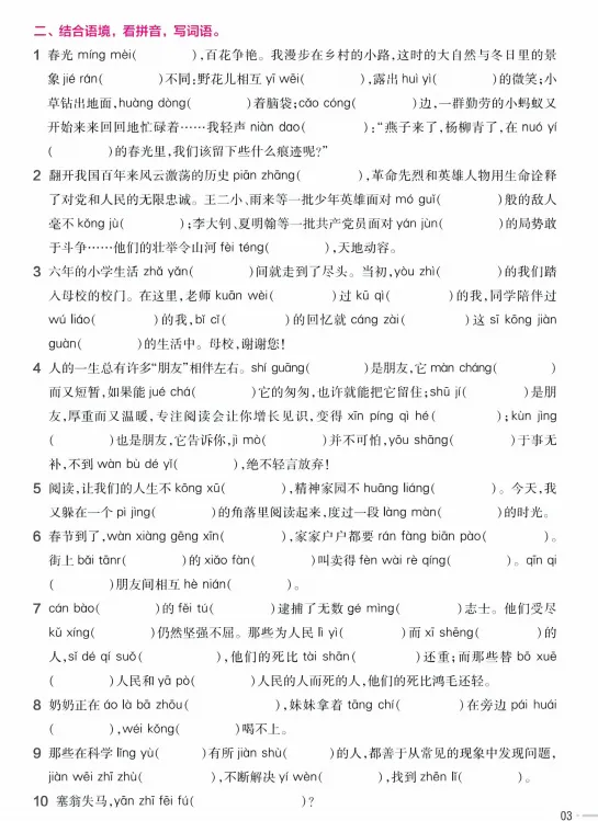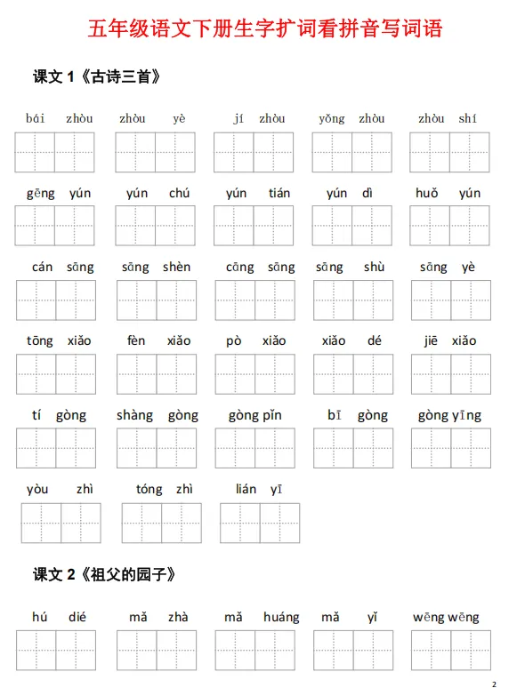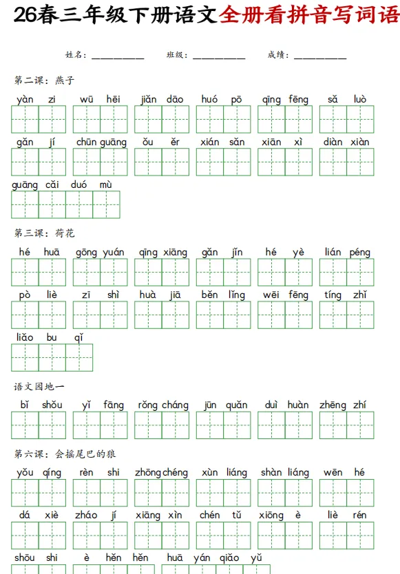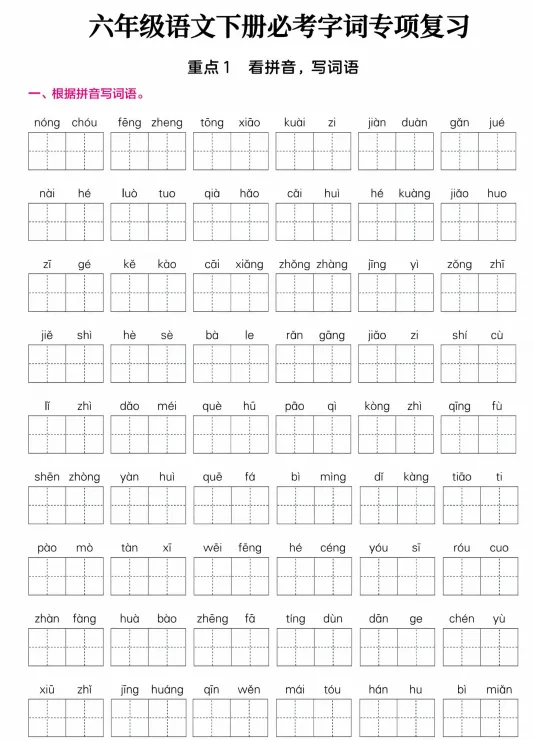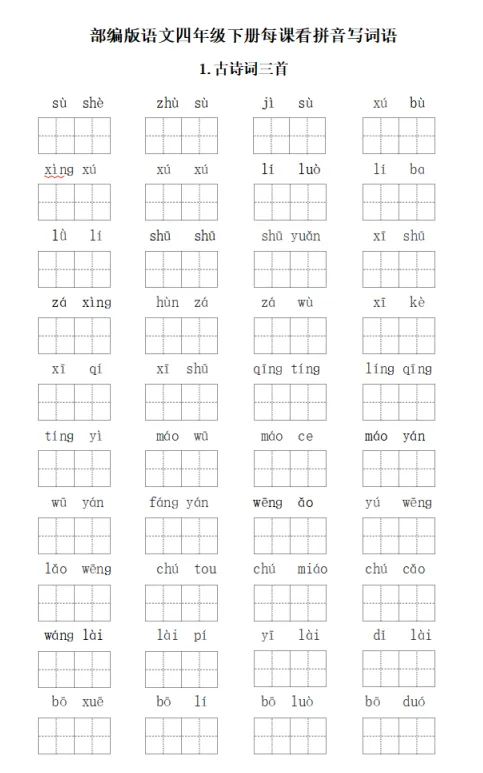 三四五六年级下册语文看拼音写词语!文末可下载电子版打印练习!