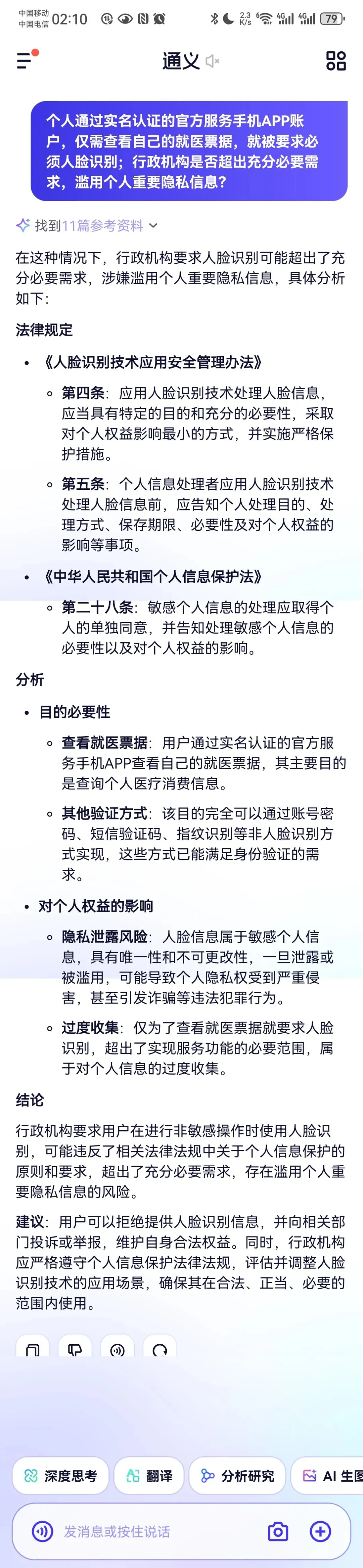 再说官方对待此问题的作风:为此曾向浙里办投诉人脸识别的非必要性及问题;接待的一位听起来是中年女性,拒绝接受投诉,说你应该专注于自己的医疗,而不是来此投诉。这就是权力人的典型思维模式与行为特点:自认为是正确的,被管辖者只有接受与否的选择,哪有你要求我如何的地位。无语。。。