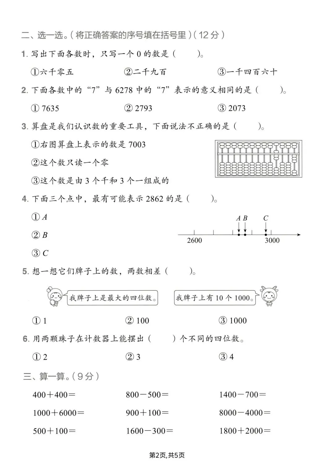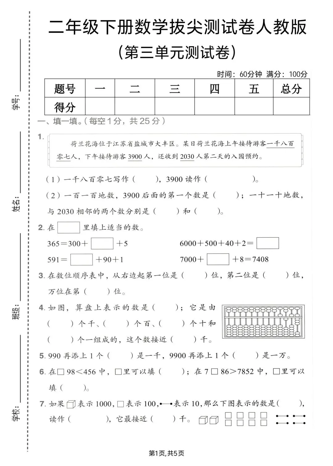 二年级下册数学第三单元拔尖测试卷含答案可打印