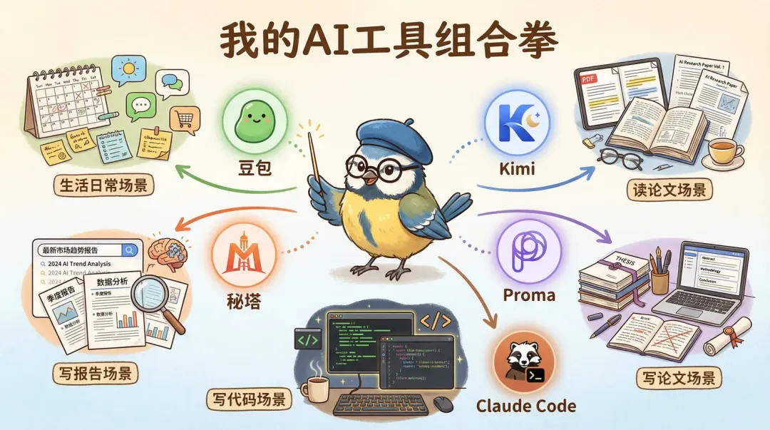 - 读论文/综述 → Kimi(长文本处理无敌)