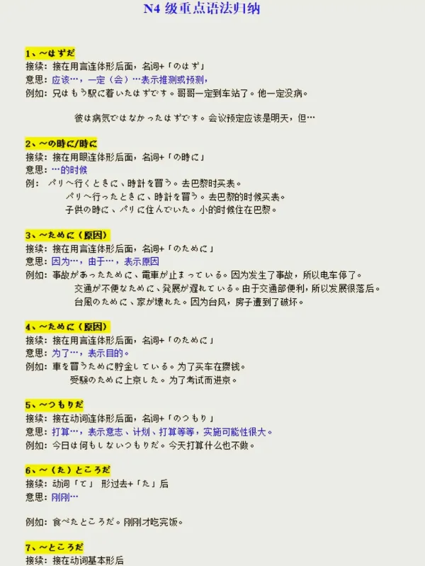 今天给大家整理了一份超全的 N4重点语法归纳📚 考前突击、日常复习都超实用! 赶紧码住背起来,轻松拿下N4不是梦
