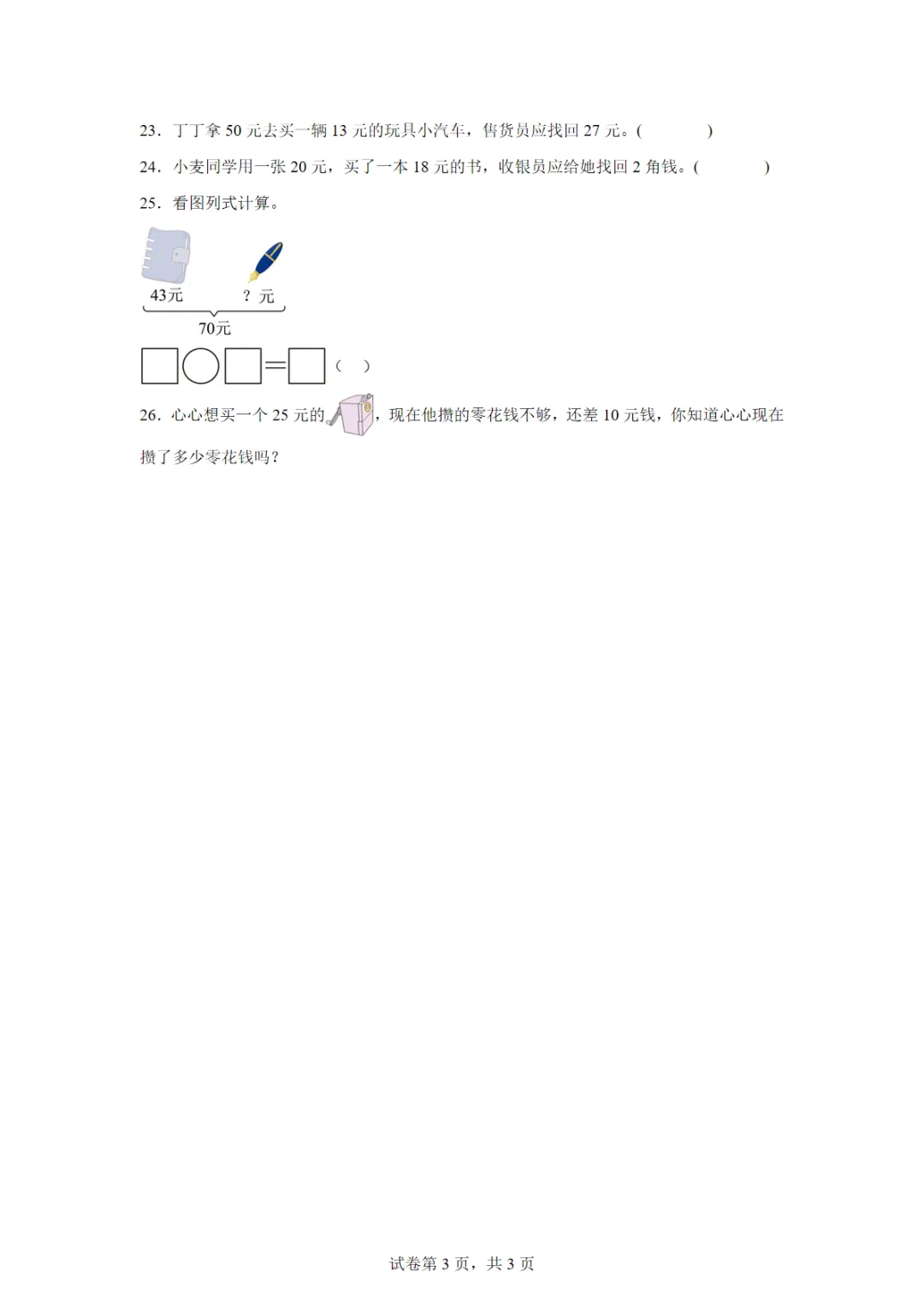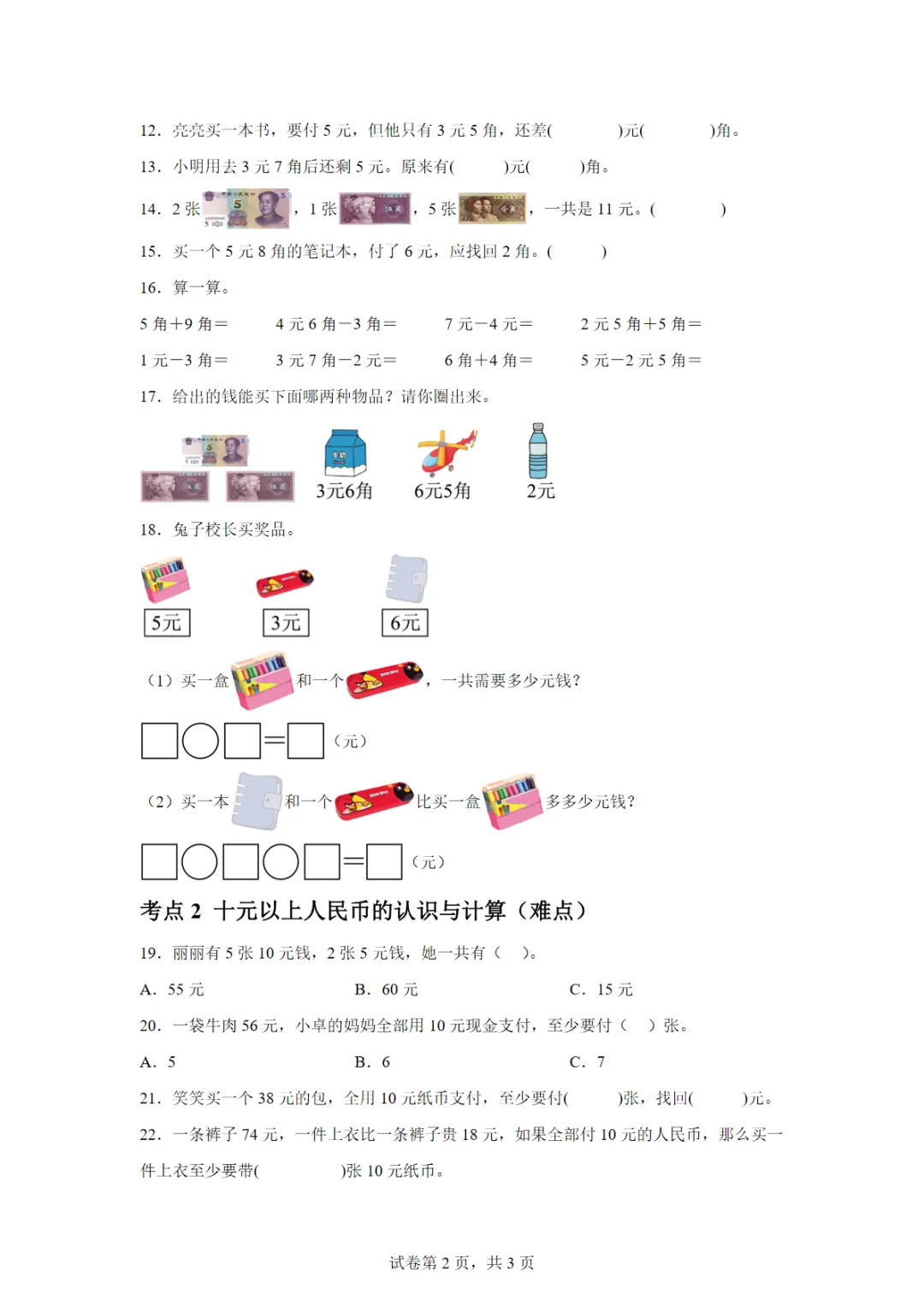 新教材人教版一年级下册数学欢乐购物街考点考题点点通