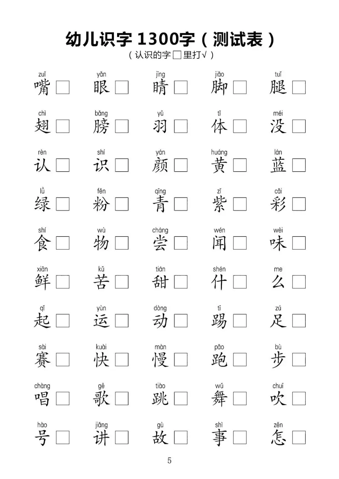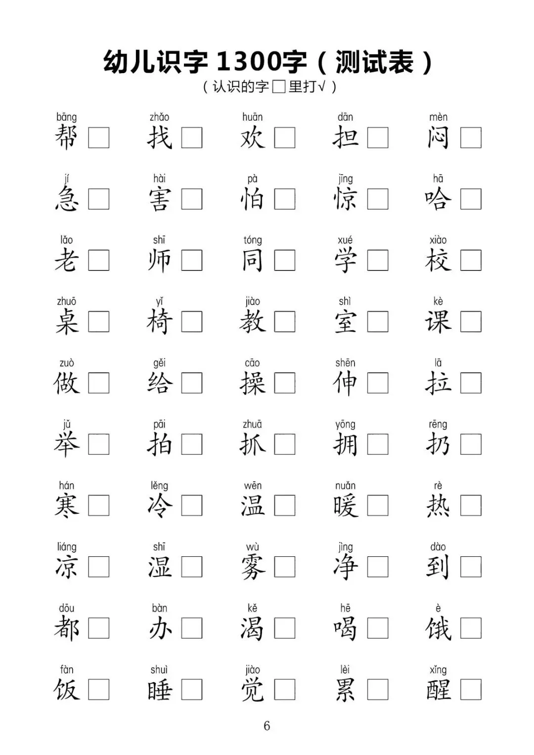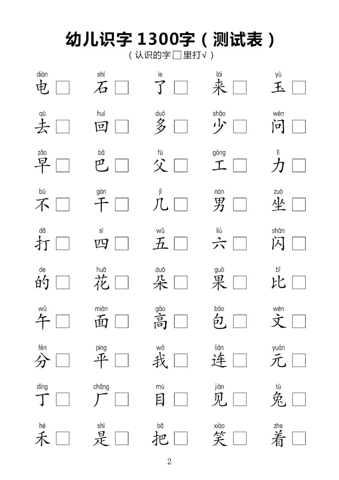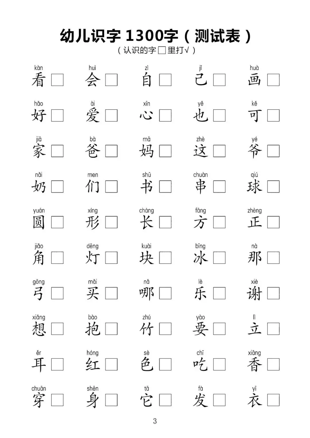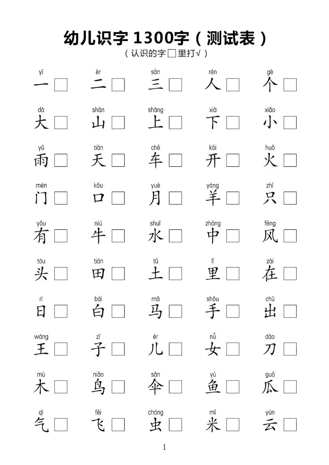 幼儿识字1300字(测试表)【可下载可打印】