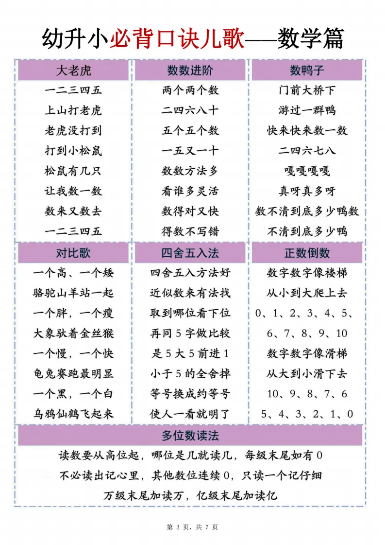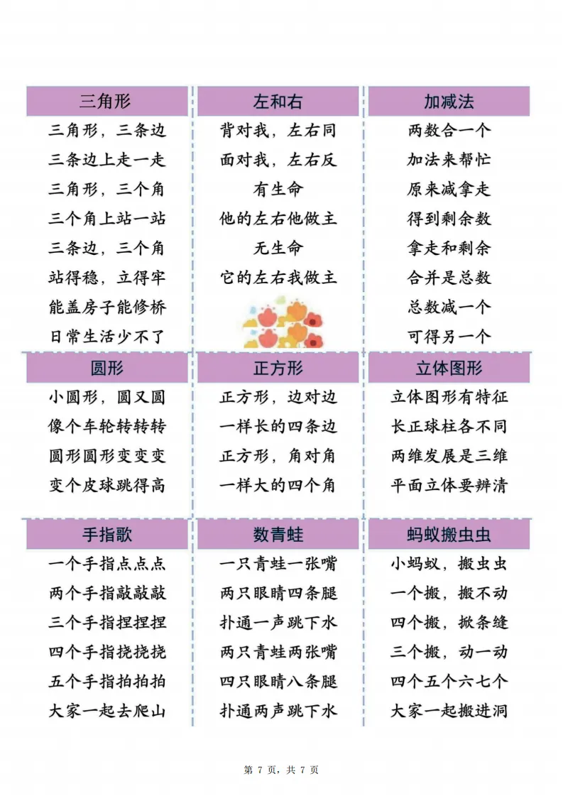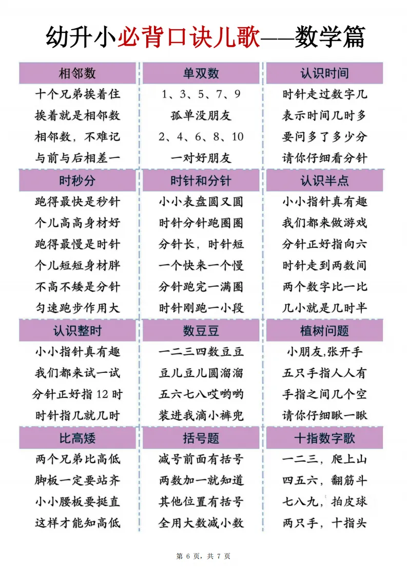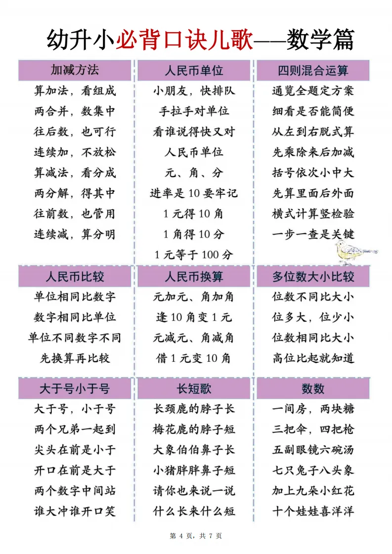 幼小衔接|数学必背口诀儿歌(4-6 岁可打印)