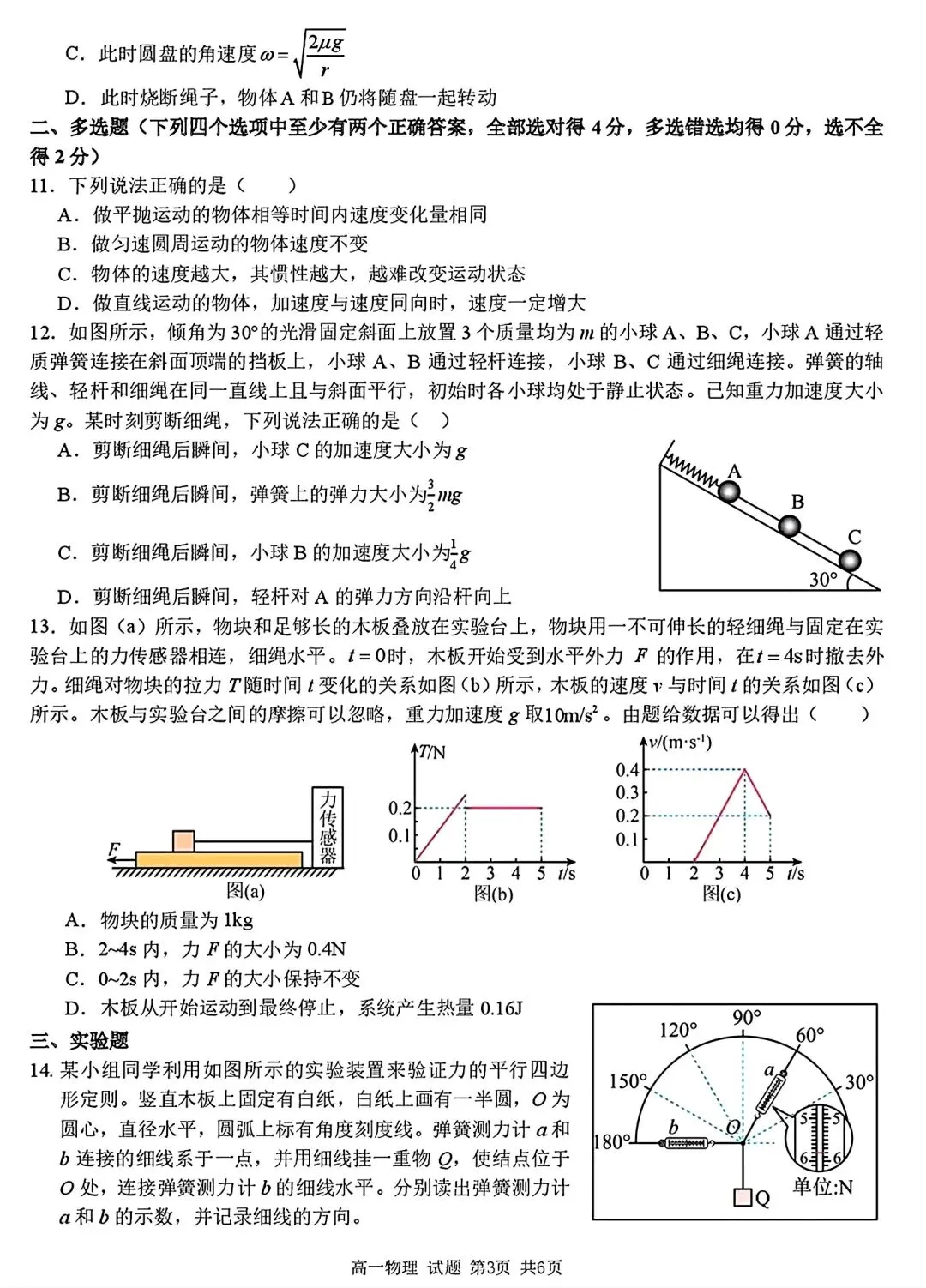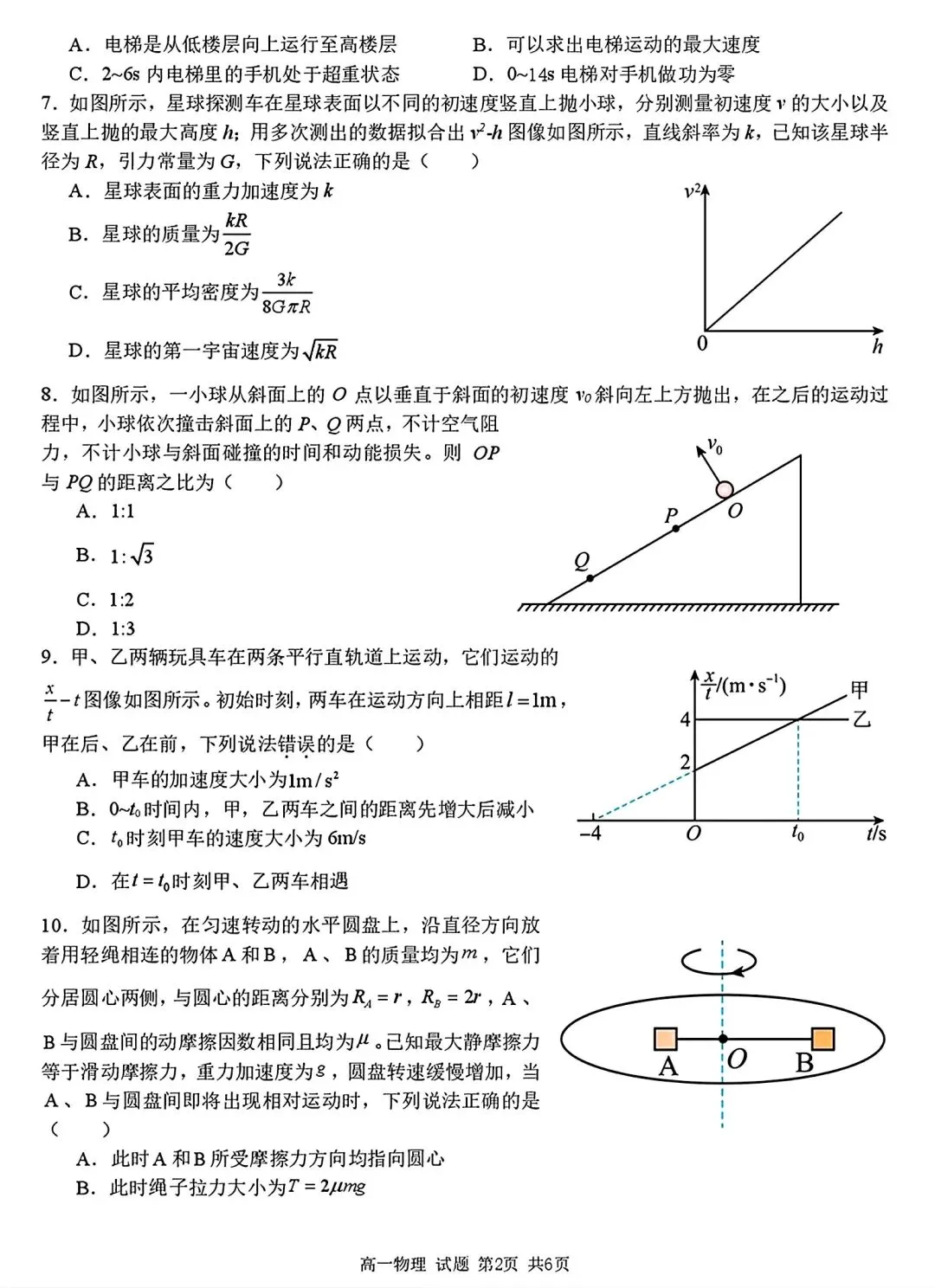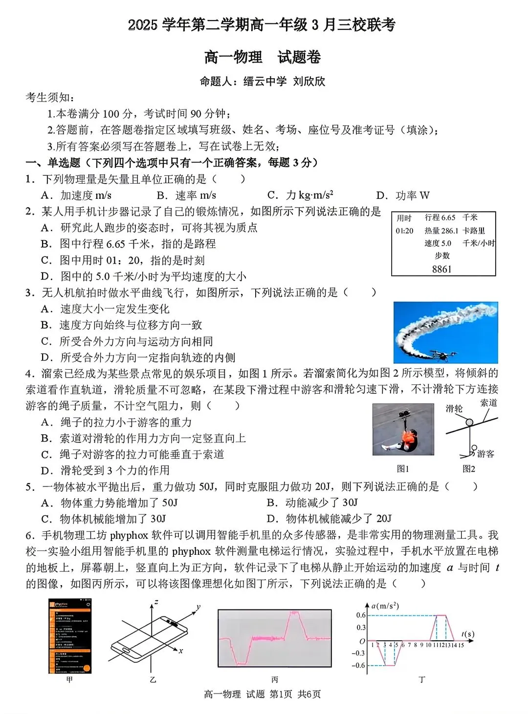 浙江精诚联盟2025-2026学年高一下学期3月阶段检测物理.pdf