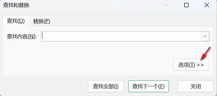 然后,按Ctrl+F组合键,或者单击功能区“开始”选项卡“编辑”组中的“查找”按钮,调出“查找和替换”对话框,如下图2所示。如果该对话框中的选项没有展开,则单击其“选项”按钮。