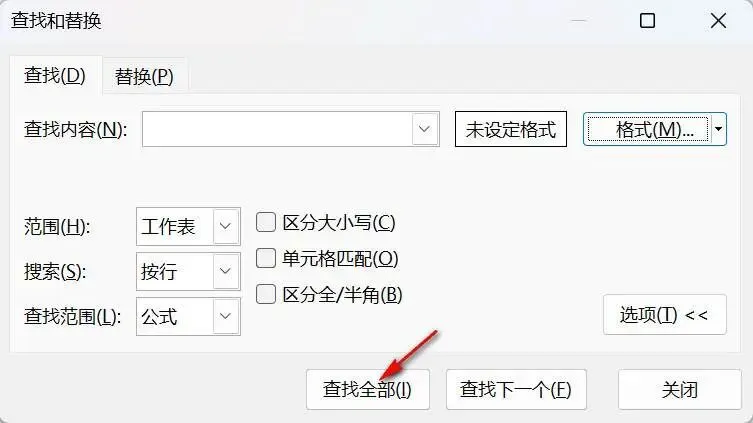 回到“查找和替换”对话框,单击“查找全部”按钮,如下图5所示。