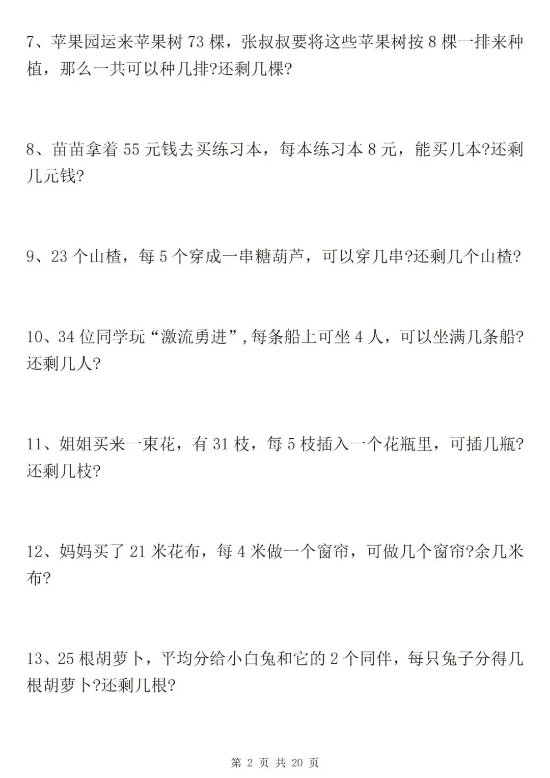 可下载丨26春二年级下册数学有余数的除法九大专项练习,电子版可打印