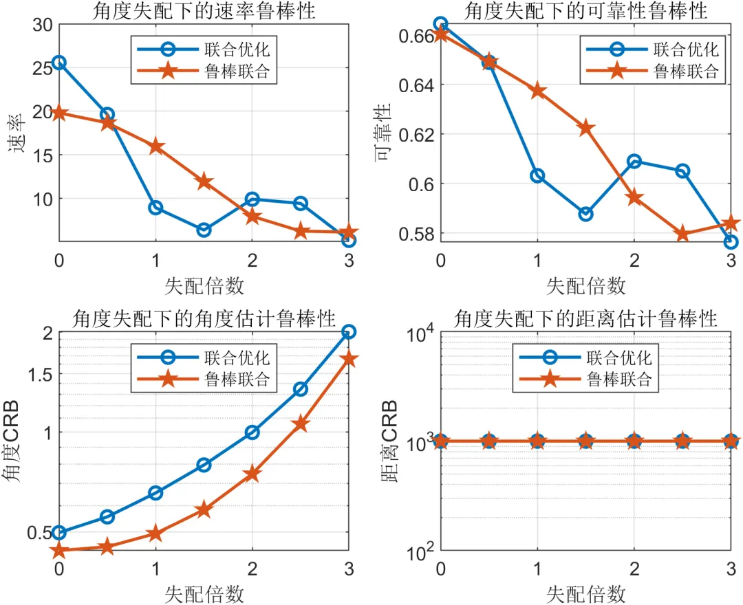 在毫米波系统中,窄波束虽然能带来更高阵列增益,但也使系统对角度估计误差和波束失配更加敏感。一旦用户方向或目标方向存在偏差,系统性能可能迅速下降。为此,本文在基本联合优化框架基础上加入鲁棒优化模块,通过在失配条件下重新评估通信与感知性能,比较非鲁棒联合策略与鲁棒联合策略的差异。鲁棒设计的目的并不是在理想条件下取得绝对最优,而是在存在不确定性时保持更稳定、更均衡的综合性能。