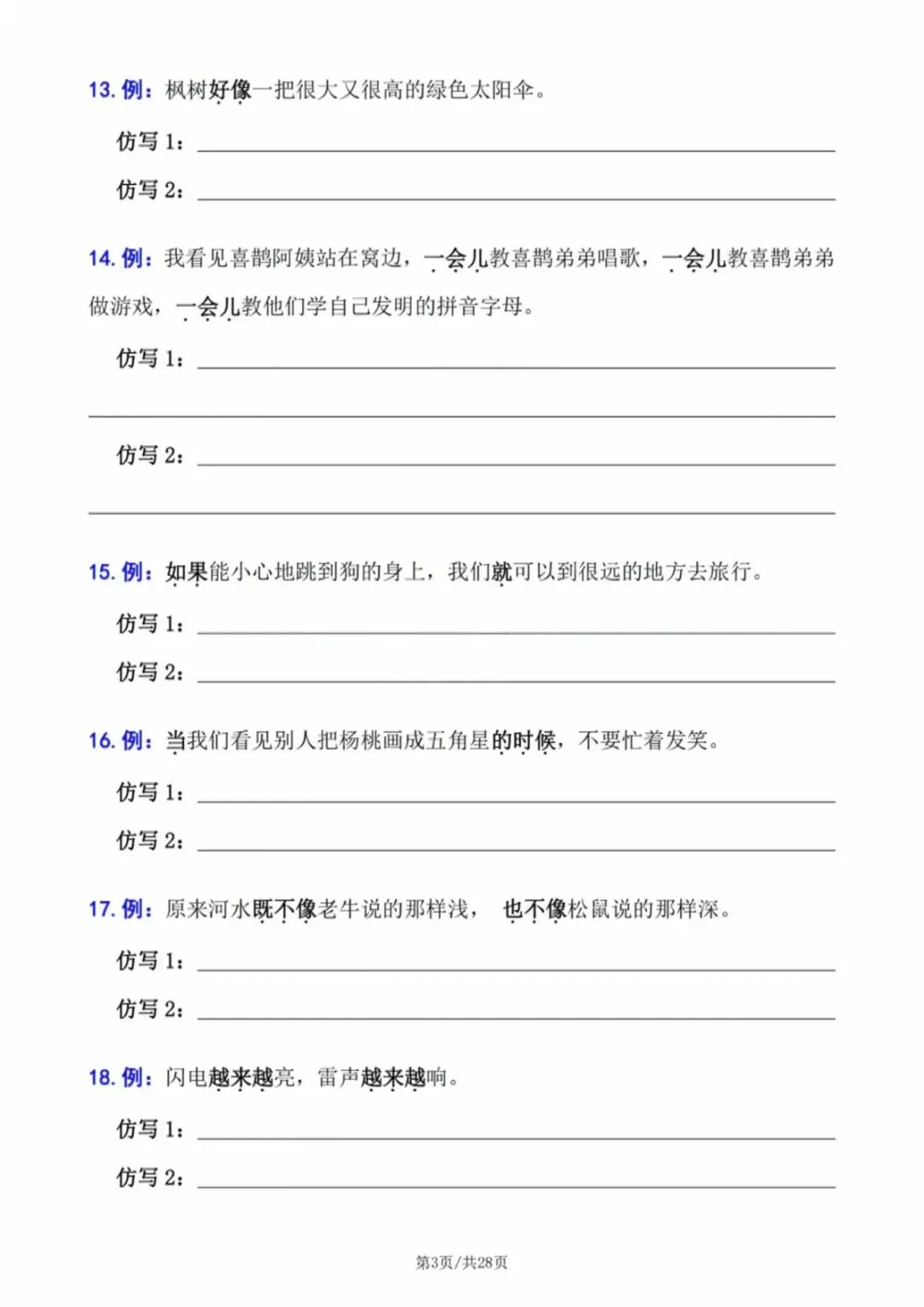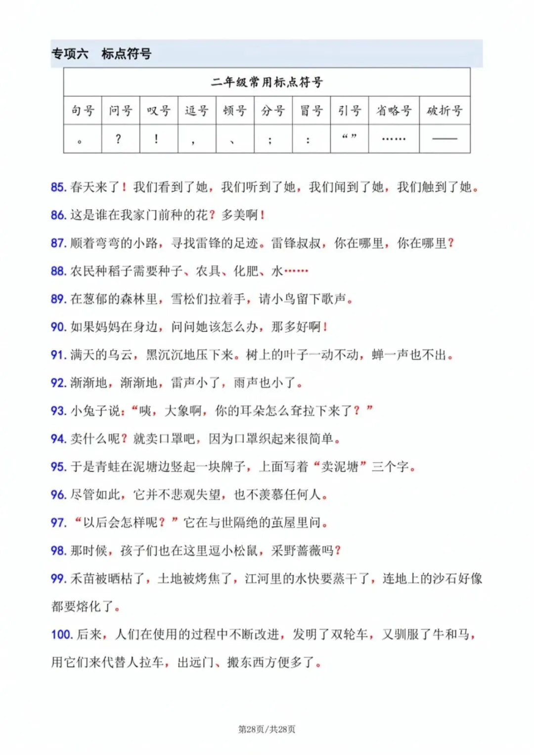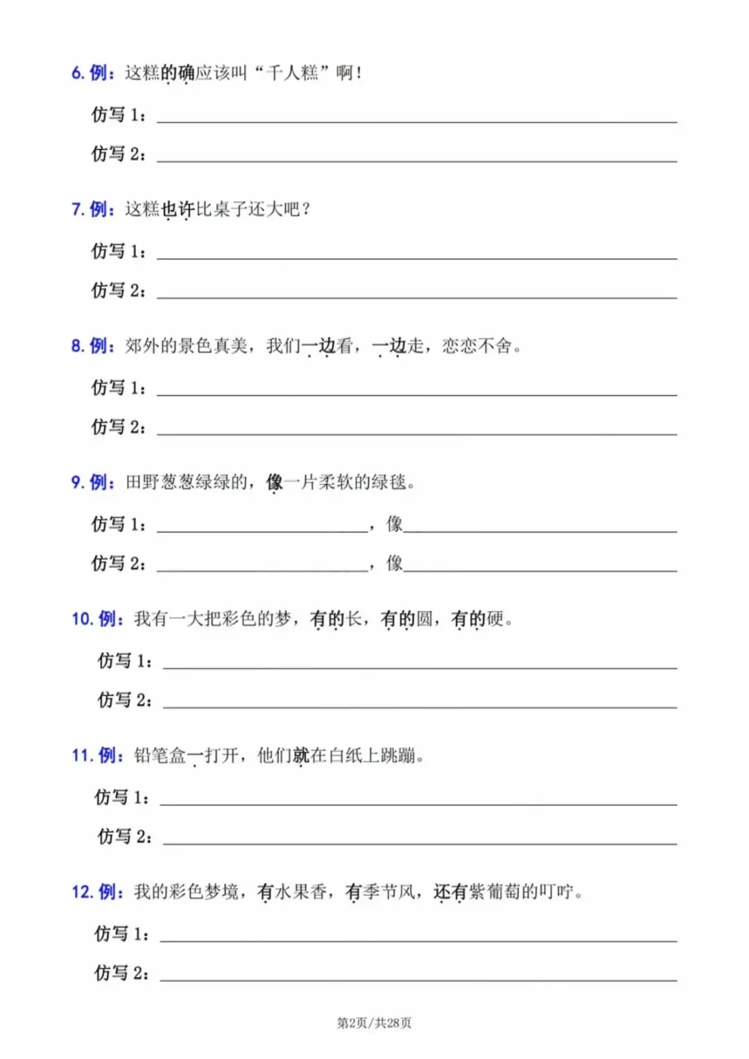 可下载丨26春二年级下册语文句子专项拔高训练,电子版可打印