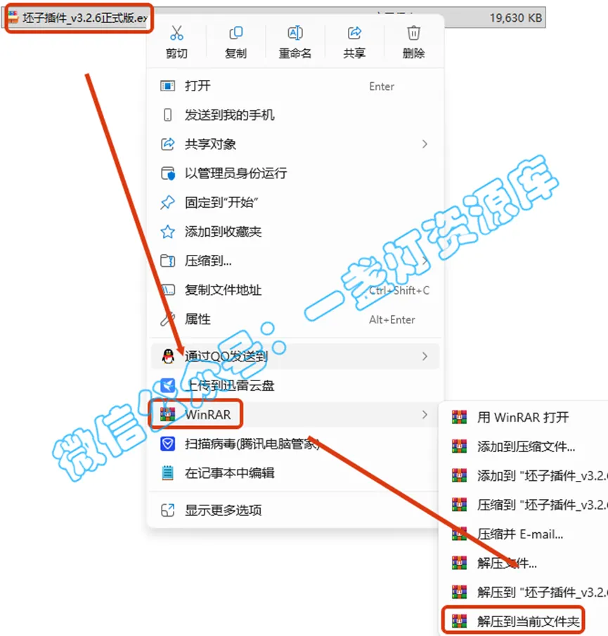 1.选中下载的压缩包,然后右键选择【解压到当前文件夹】