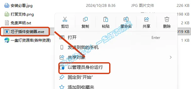 2.打开刚刚解压的文件夹,选中【坯子插件安装器】文件,右击选择【以管理员身份运行】