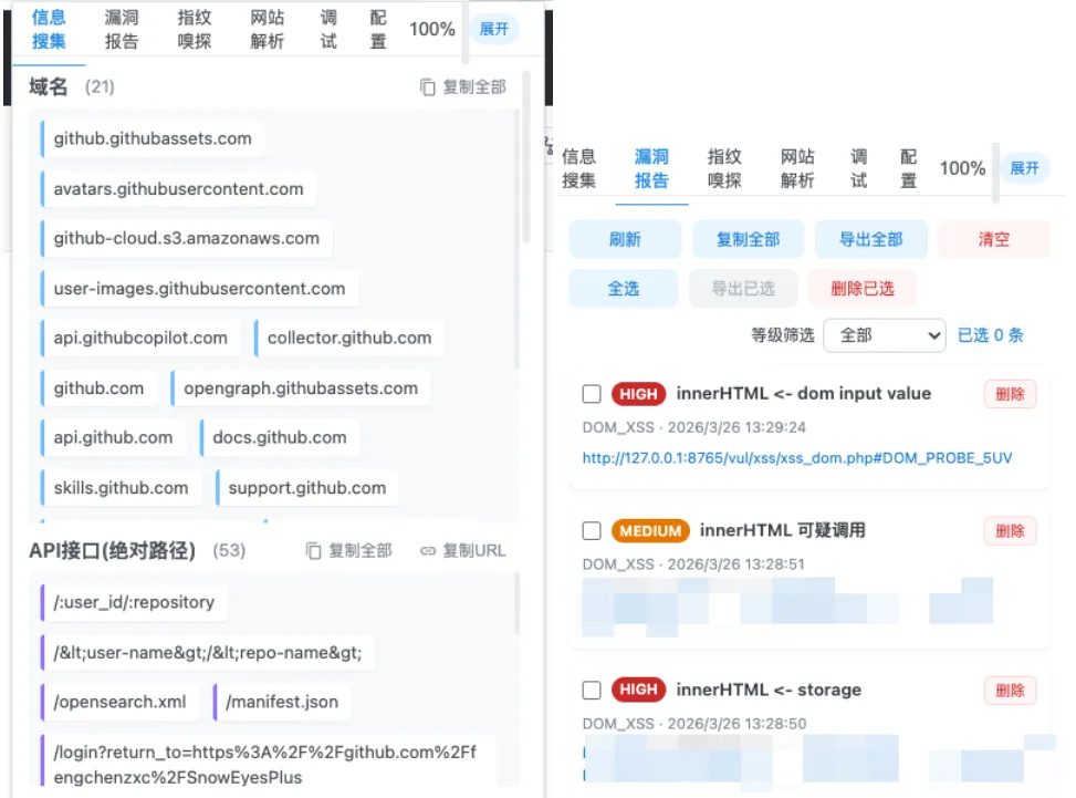 项目当前定位已经从“单体扫描插件”升级为“前端资产与 DOMXSS 审计工作台”。