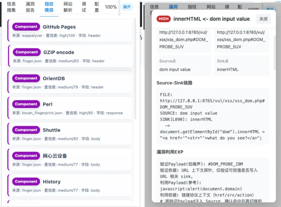 浏览器插件 | 指纹识别、DOM XSS 检测、漏洞报告生成、一键 PoC 复现、AI 误报研判