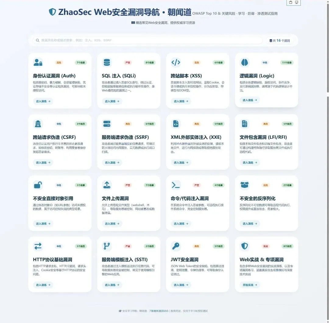 一个综合性的Web安全学习平台 | 涵盖16大类Web安全漏洞,共80+个实战场景