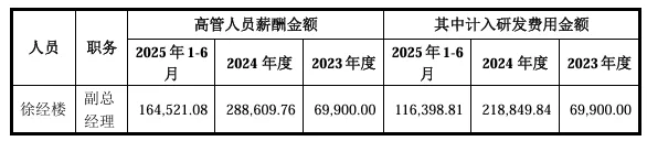 徐经楼先生于2023年7月至今,任公司副总经理,主要职责专注于研发管理工作,提供战略指导与资源协调,系兼职研发高管,其工作内容与研发活动相关。公司根据其实际参与研发活动的时间及贡献,将其2023年、2024年及2025年1-6月部分薪酬计入研发费用,薪酬的归集、分配和核算准确。除徐经楼外,公司无其他高管等人员薪酬计入研发费用的情况。