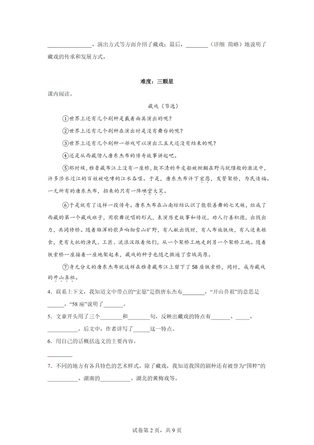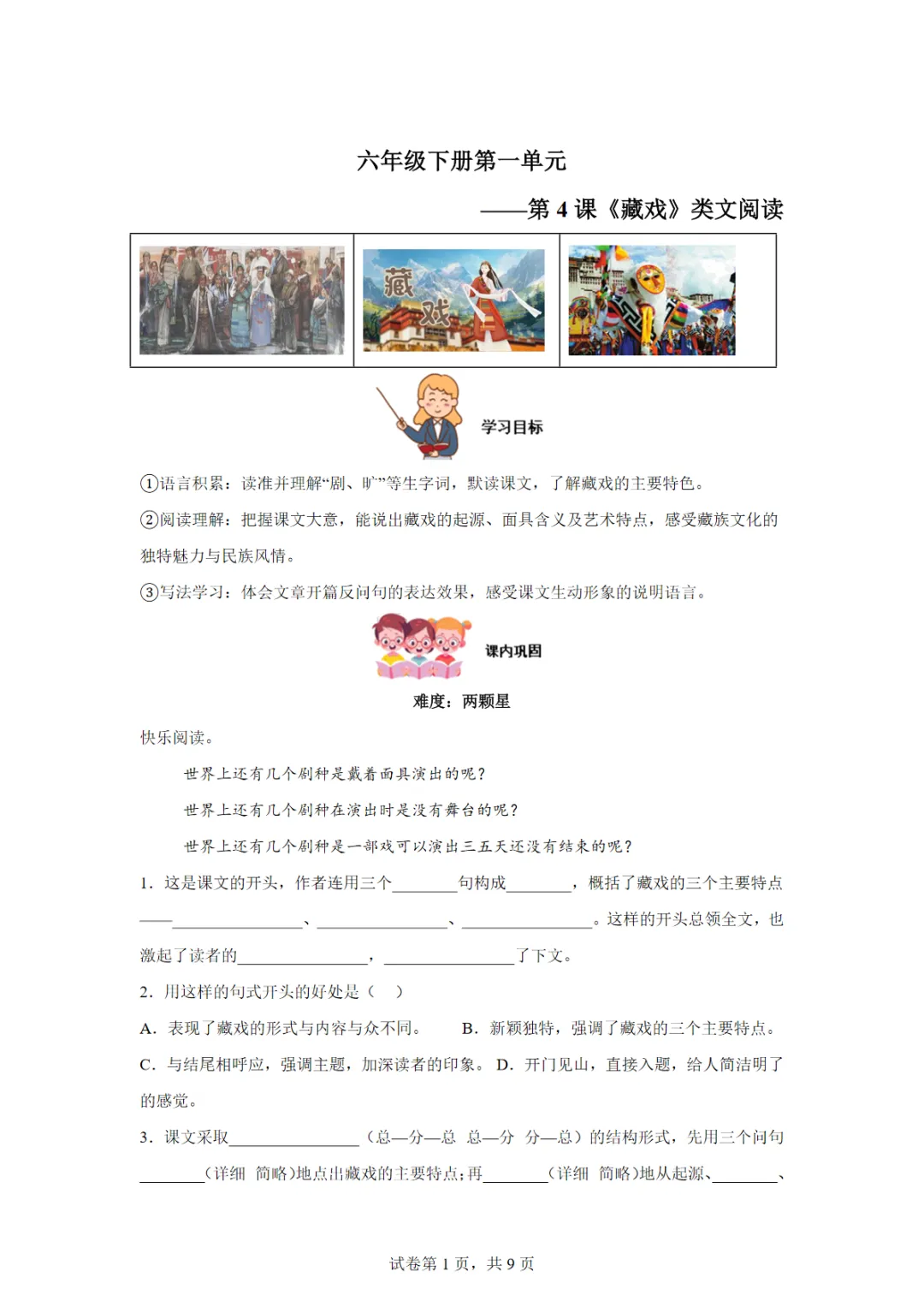 【高清电子版】六年级下册第一单元第4课《藏戏》类文阅读