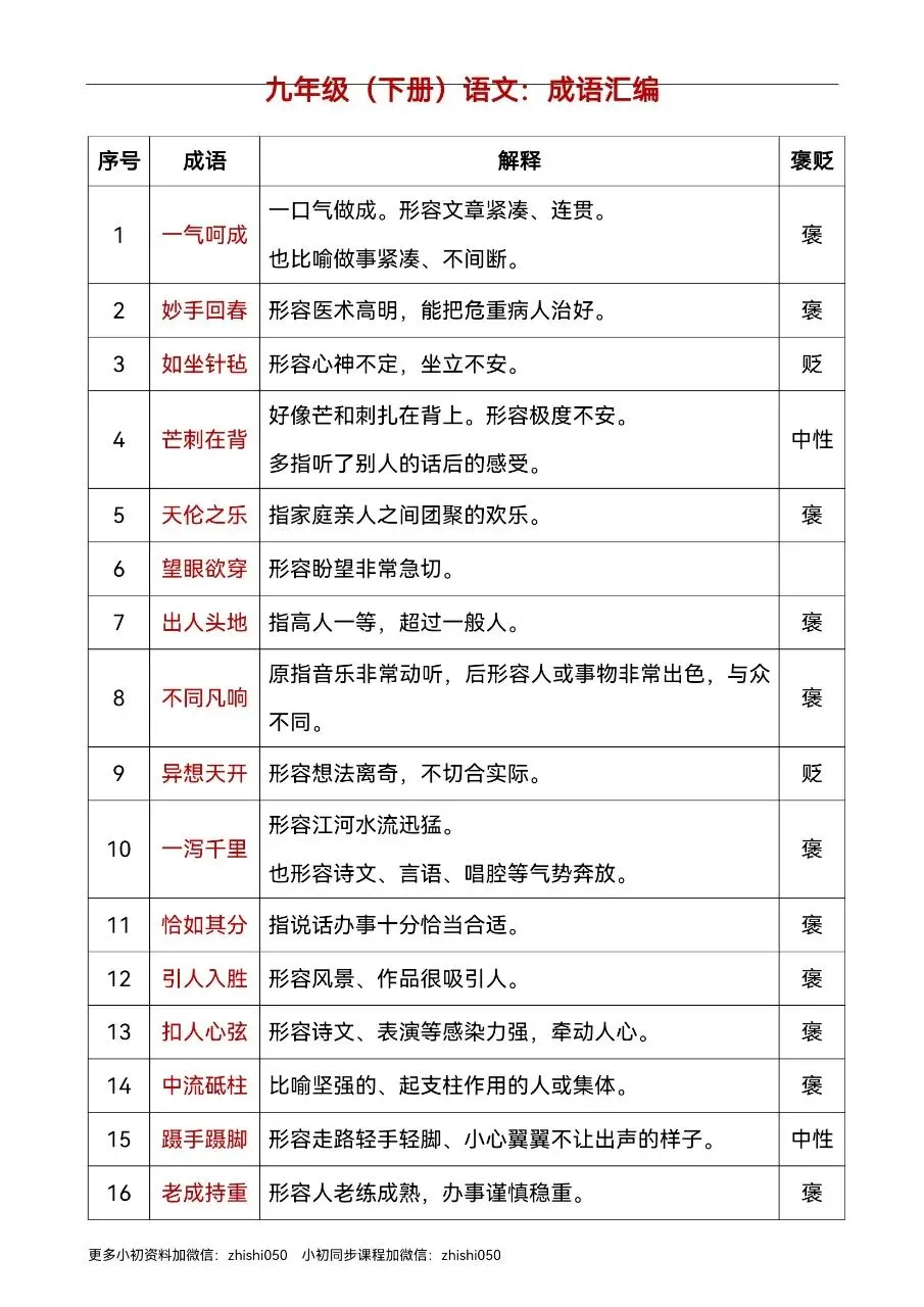 九年级下册语文|成语汇编(可下载打印) 初中资料每日更新,具体看完整PDF版本 (温馨提示:文末👇有电子版下载🔗) 新版九年级(初三)下册语文 成语汇编 △因篇幅有限,只展示部分资料截图△ ↓↓↓ 领取完整电子版: ①:点一点右下角的“👍”和“❤️”,感谢🙏 ②:在公众号对话框回复:1050 资料合集:👇👇 九年级下册数学 九年级下册英语