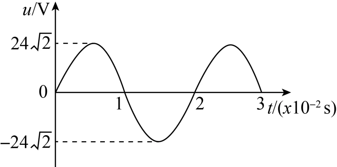 【解析】 由题图知,原线圈电压最大值为Um=242 V,则原线圈两端电压的有效值为U1=Um\r(2)=24 V,故A错误;灯泡正常发光,由P=UI得,副线圈中电流有效值为I=PLU2=3 W6 V=0.5 A,故B正确;由理想变压器电压与匝数关系可知n1n2=U1U2=4,故C错误;理想变压器没有能量损失,原线圈的输入功率等于副线圈的输出功率,则原线圈的输入功率P1=PL=3 W,故D错误.