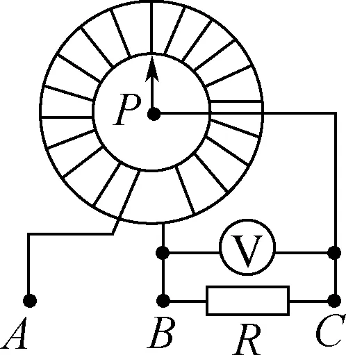 7. 如图甲所示为一种自耦变压器(可视为理想变压器)的结构示意图.线圈均匀绕在圆环型铁芯上,滑动触头P在某一位置,在BC间接一个交流电压表和一个电阻R.若AB间输入图乙所示的交流电压,则( )