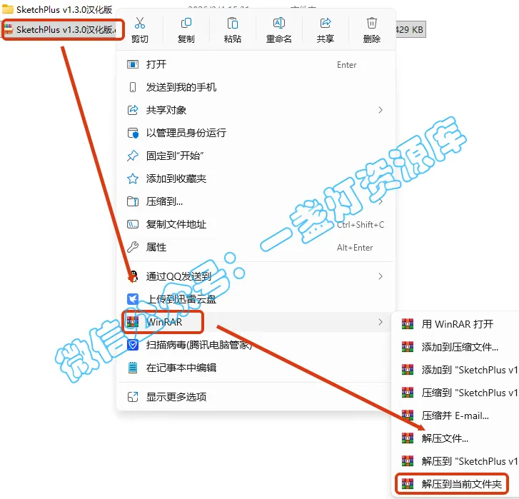 1.选中下载的压缩包,然后鼠标右键选择【解压到当前文件夹】