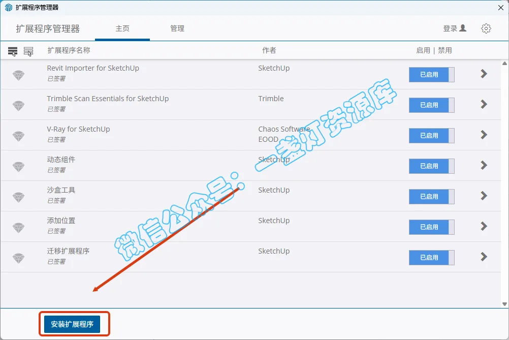 4.点击左下角【安装扩展程序】