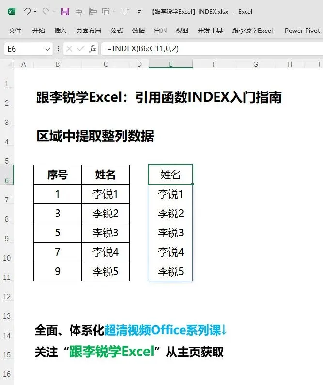 【跟李锐学Excel】INDEX