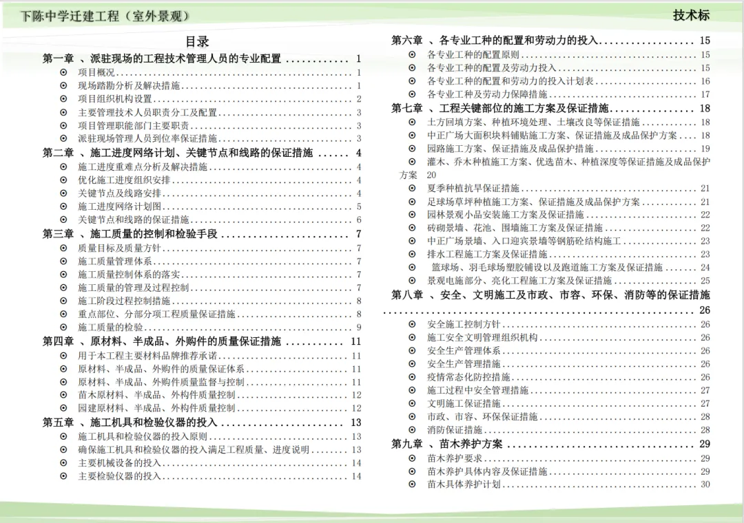 【免费下载-精品技术标】BZ744期-浙江-台州-下陈中学室外景观绿化工程技术标-32页word-A3版本,卷王地区出品