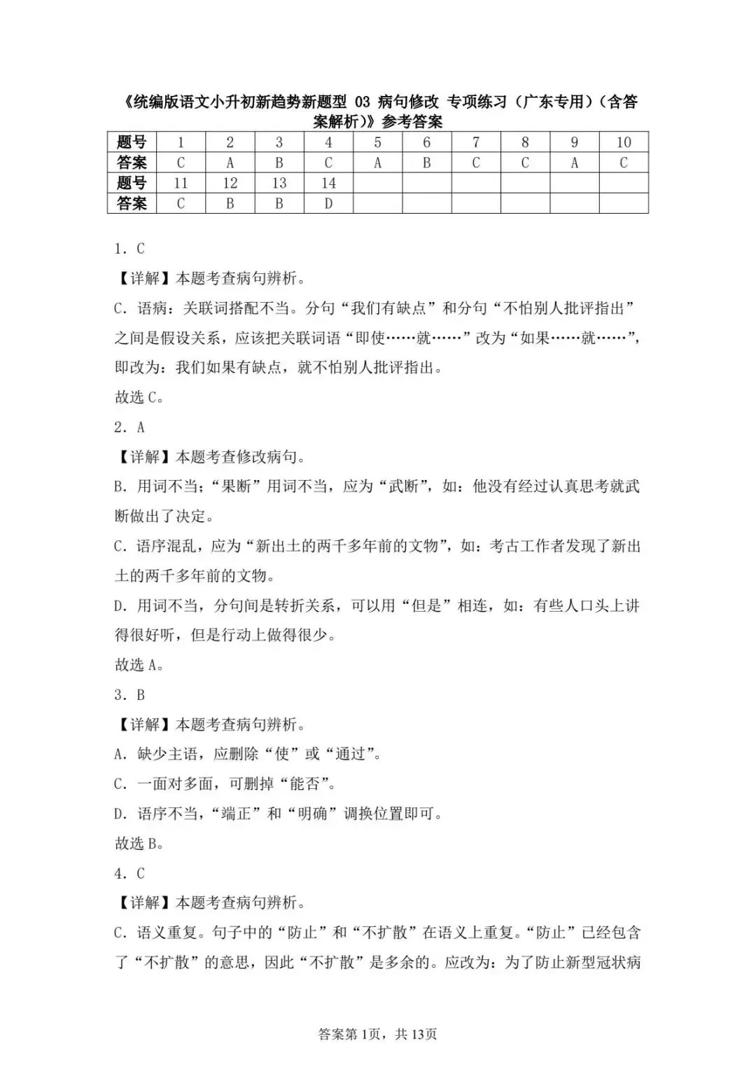 小升初关键期!语文新题型病句修改专项练习来啦!精准涵盖高频考点,贴合考试趋势。电子版可轻松打印,还附有详细答案,让孩子在家就能高效练习,快速提升病句修改能力。快来公众号免费领取,为升学助力!