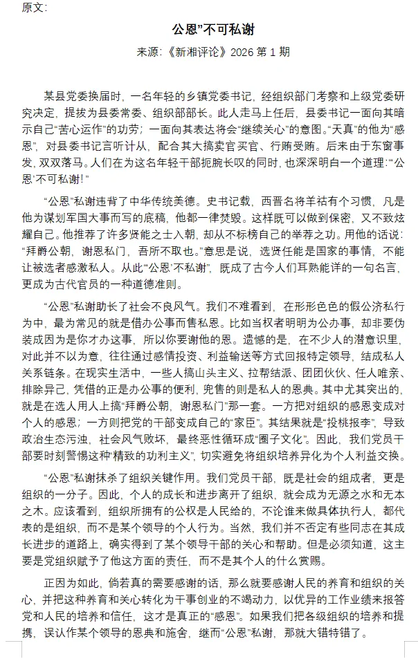 申论范文精析:’公恩’不可私谢(电子版可打印)