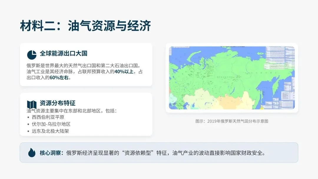 精准识别俄罗斯“高纬度、多冻土、河流北向、人口西聚”的关键地理特征,理解其自然与人文要素的区域独特性。