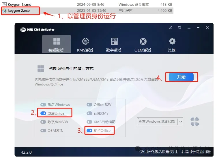 第七步:以管理员身份运行激活工具,下如下选择,开始激活即可。