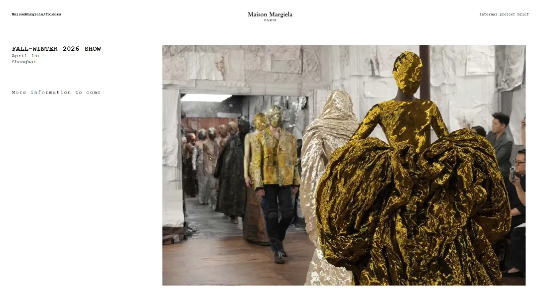 4月1日上海2026秋冬大秀只是开端,随后浮出水面的是 「Artisanal高级定制」,「Anonymity面孔消隐」,「Tabi分趾鞋」及「Bianchetto时间之漆」,四个house codes,以及围绕它们展开的四城展览。