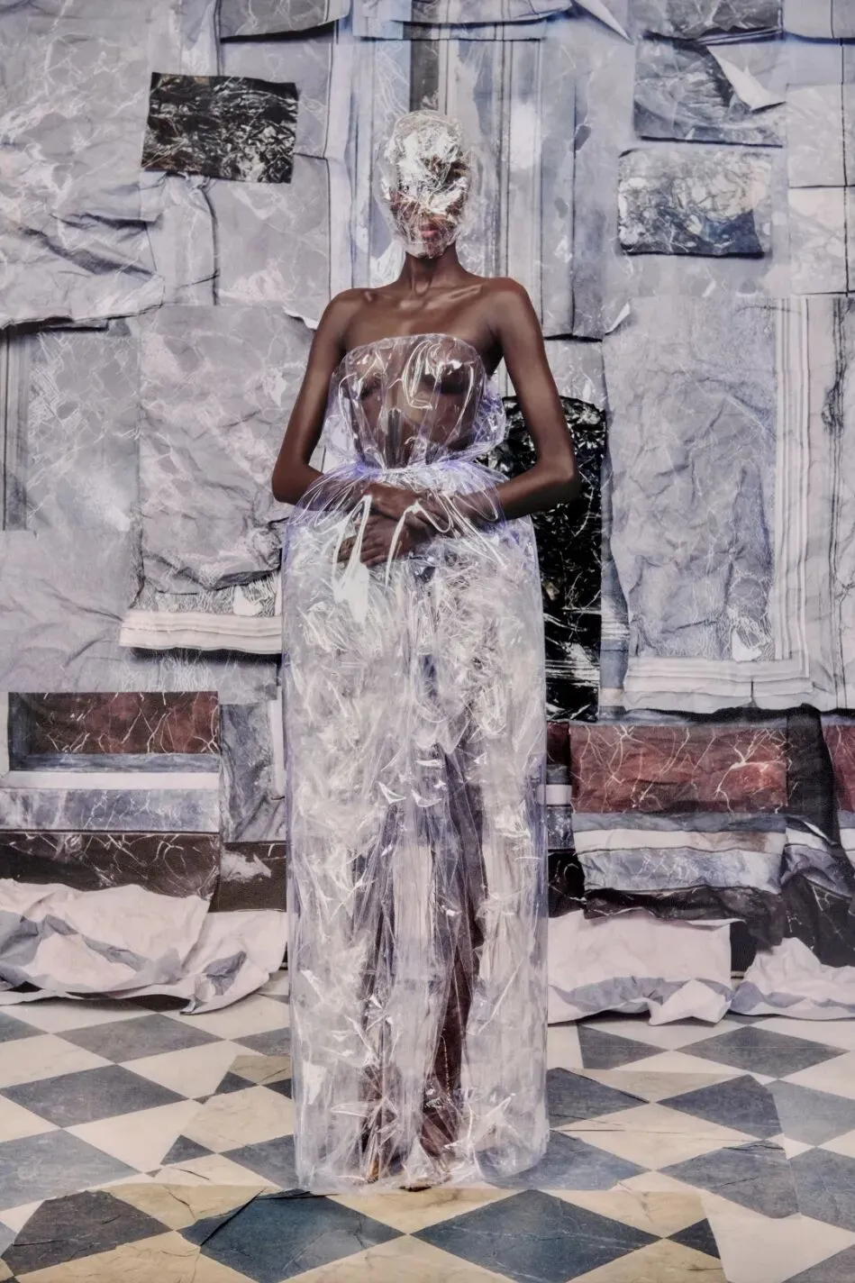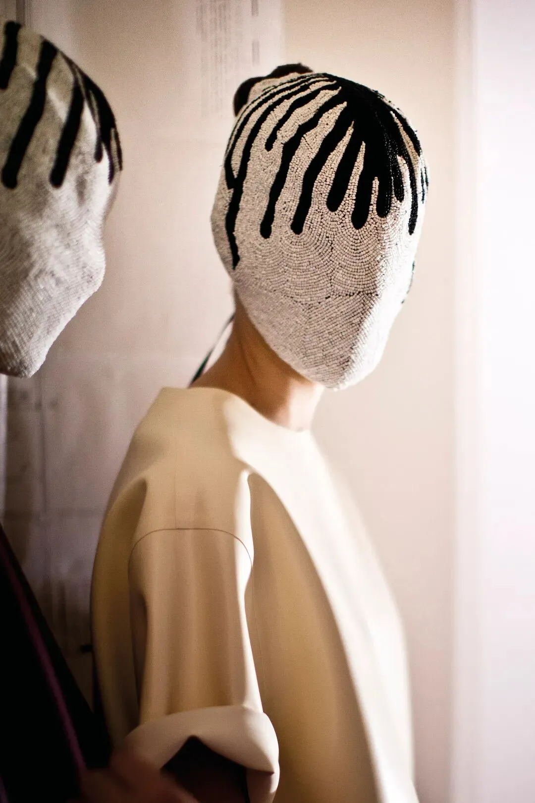 北京,Anonymity。品牌的foundational principle之一。同样从1989的档案中展开。匿名在Maison Margiela并非造型效果,它直指身份降噪,表情退出,观看回到服装设计的轮廓、材质与结构。脸被遮挡,服装占据叙事中心。