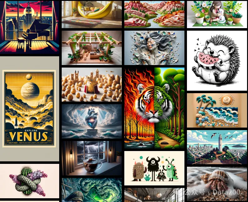 DALL-E 3 是由 OpenAI 开发的图像生成模型,它能够根据用户提供的文字描述生成各种形式的图像。与传统的图像生成模型相比,DALL-E 3 具有更强的抽象能力和创造力,可以生成与描述相符合的独特图像。例如,用户可以输入“大象披着夜空的星星”这样的文字描述,DALL-E 3 就能够生成一幅大象形象,其身上布满了星星的图像。这种能力使得个体可以通过简单的文字描述实现图像创作,极大地拓展了创作的可能性。