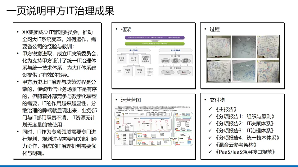 核心定位:IT 架构演进与 IT 治理是企业数字化转型的 “双引擎”,IT 架构为技术落地提供框架支撑,IT 治理为规范执行提供保障,二者协同驱动 IT 从内部支撑转向 “生产系统”,助力业务创新与效率提升。