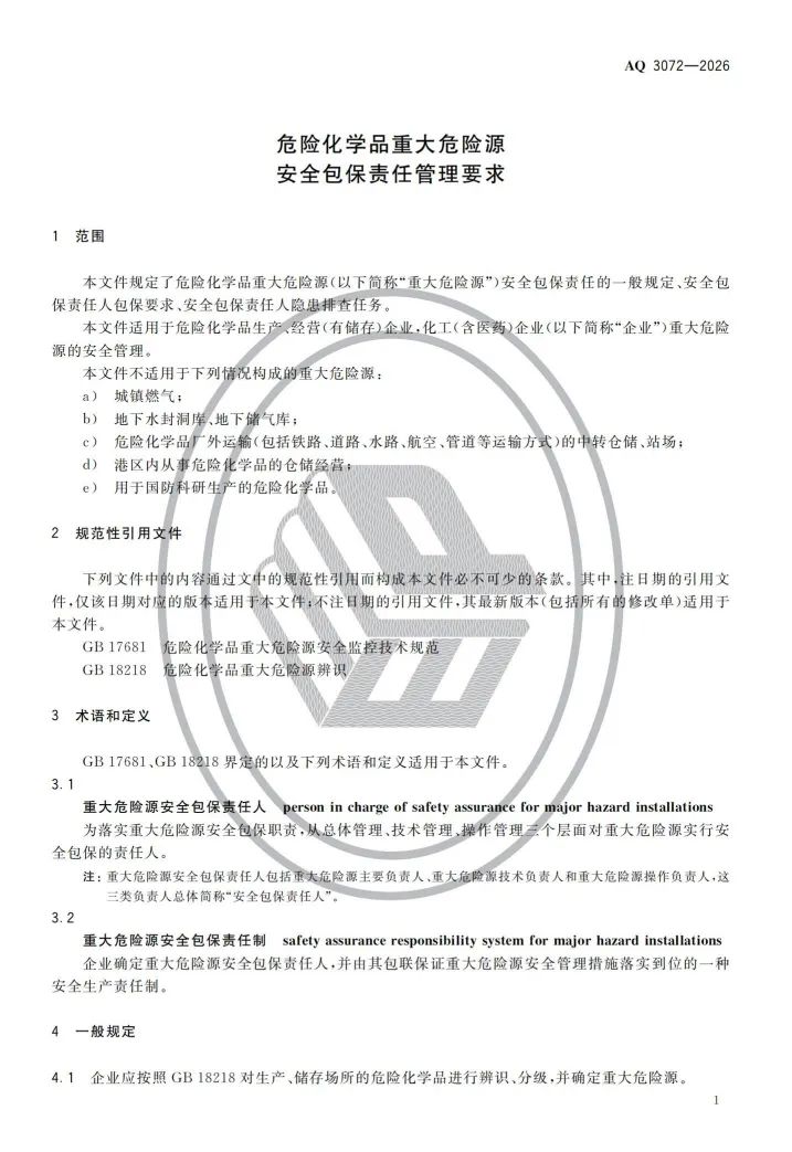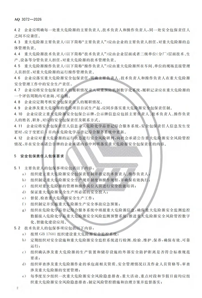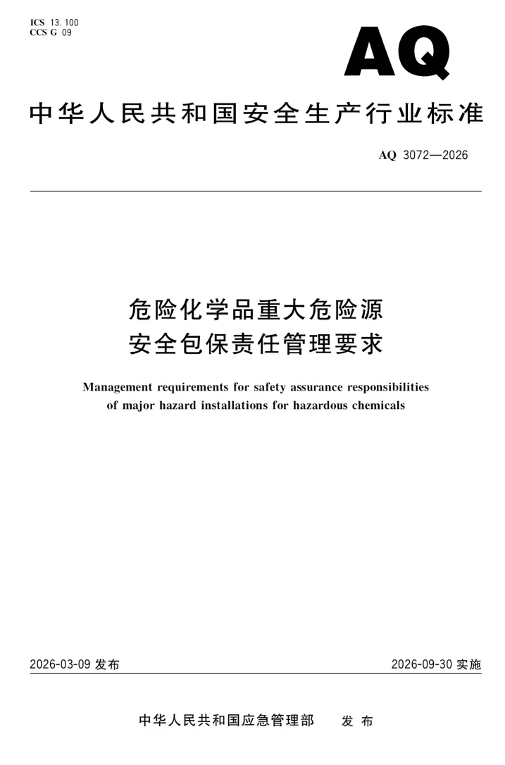 【新标速递】【免费下载】危险化学品重大危险源安全包保责任管理要求(AQ3072-2026)