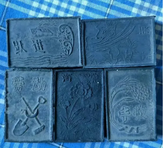 方方正正,黑得发亮,这堆小砖头叫墨锭,老辈子上学走学都靠它,砚台上一磨,黑水顺着笔尖流,春夏秋冬全是书香,不用电也不用电灯泡,要花时间磨出一墨,小时候看三叔家书桌上就有一溜墨锭,几个花纹各不相同,什么“进步”“丰收”“劳动”都刻着字,从前读书做功课全靠它撑场面。