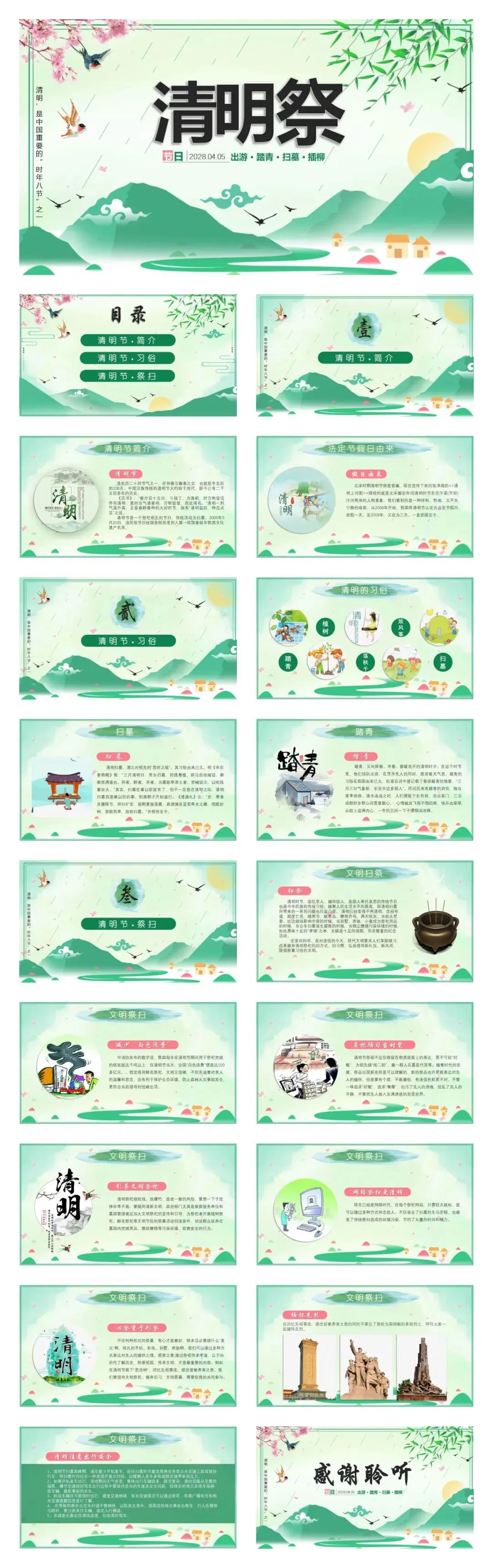 本文内容分享【131套清明节PPT模板】