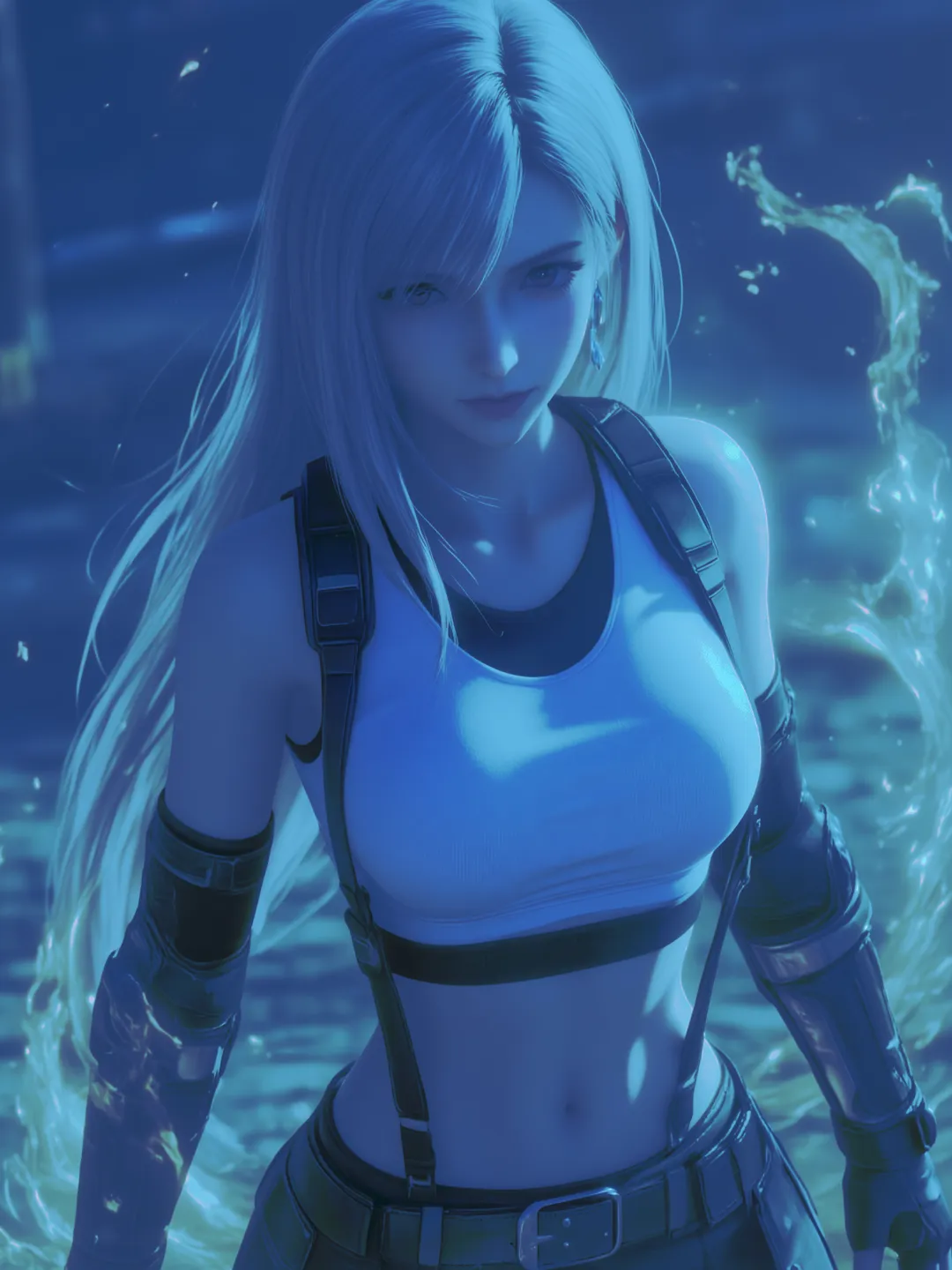效果图:蓝调版的蒂法,有八神的蓝色火焰了