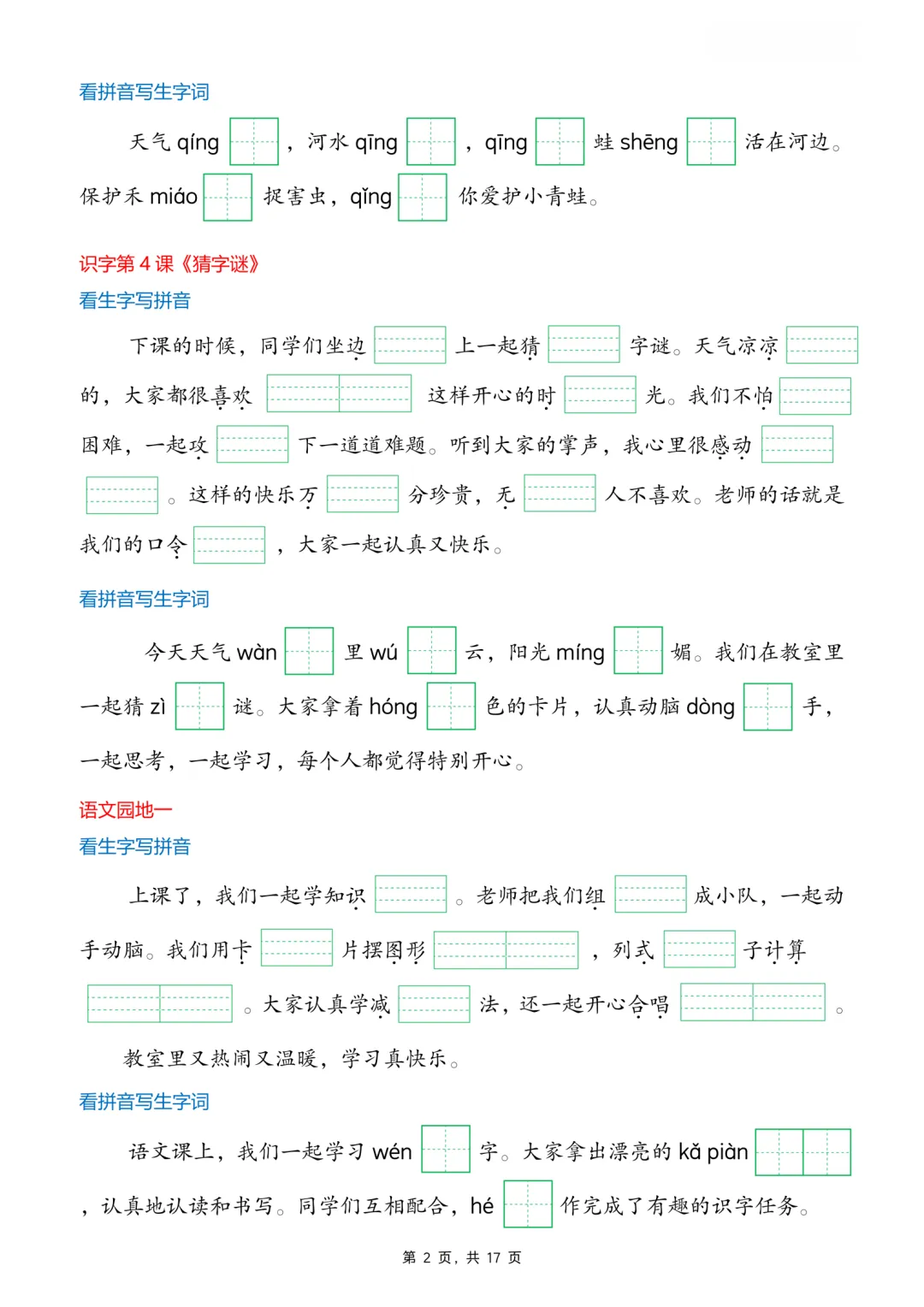 《一下语文生字词情境默写》