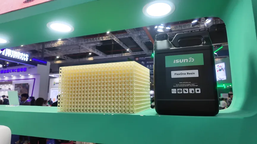 这是TCT亚洲展上,易生展台最吸引笔者的一款材料——FlexOne单组分弹性树脂。然而,让笔者惊讶的还不止极高的性能这一点。