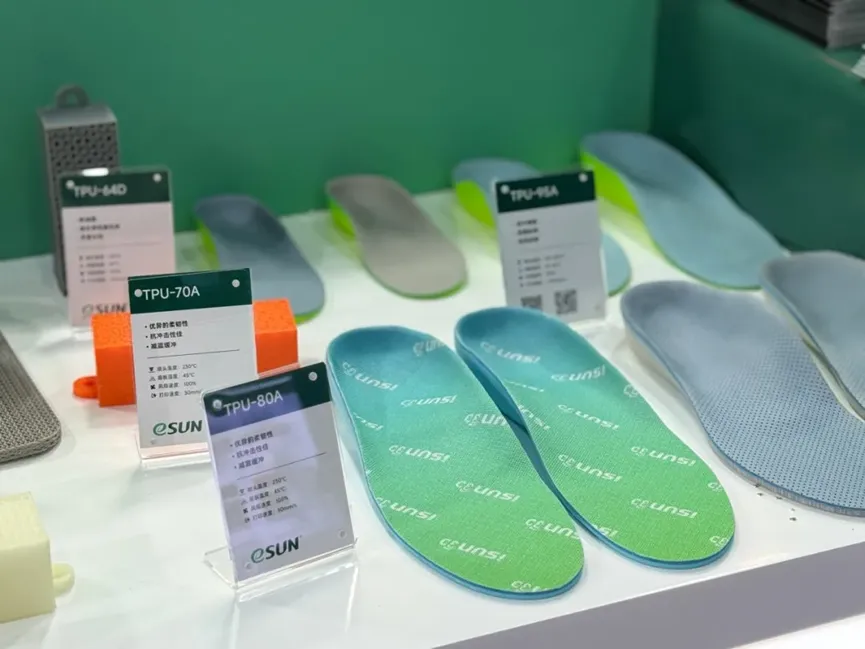 在TCT亚洲展上,易生还发布了单组分多色发泡弹性树脂,在制件打印完成之后不需要再进行颜色喷涂,给终端应用带来极大便利,也进一步丰富了场景应用。