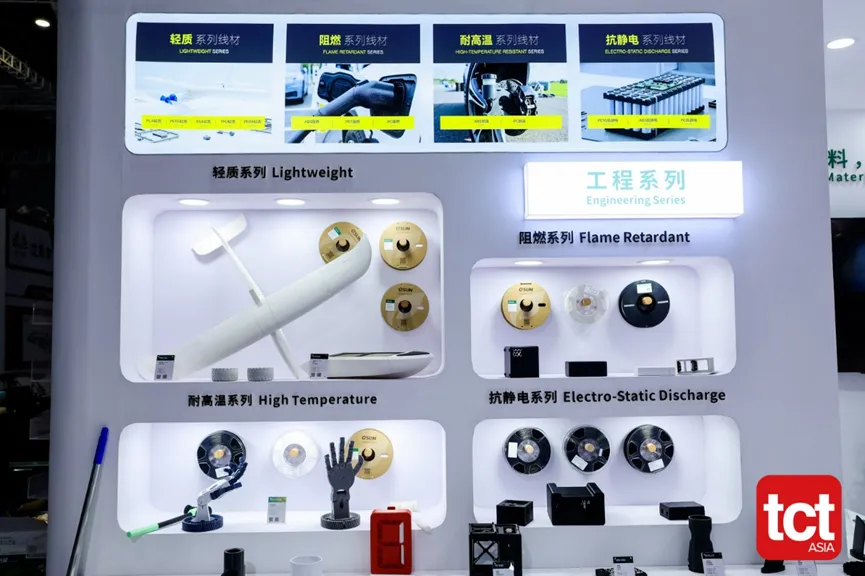 笔者发现易生在十余年间不断改进配方,至今已推出了丝绸、哑光、木质、夜光等数十种PLA耗材。而且这一产品系列至今仍在扩容,在TCT亚洲展上,其全新升级的金属免喷涂PLA系列也亮相展出。