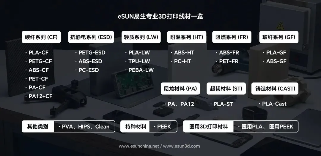 笔者注意到,eSUN目前面向此类应用场景推出了ABS、ABS+、ASA+、PC、PA共5类耗材,能够满足工业用户对材料强度、韧性、抗冲击性以及耐用性的需求。能够直接制造工具,也能制造功能原型。