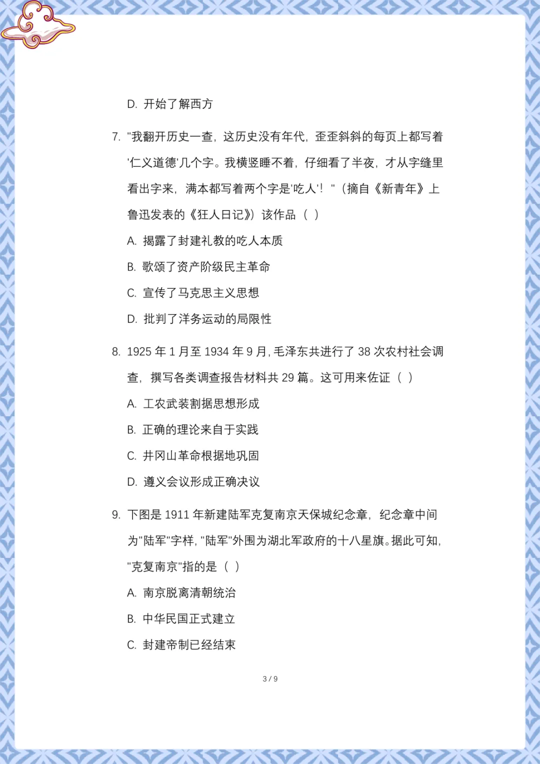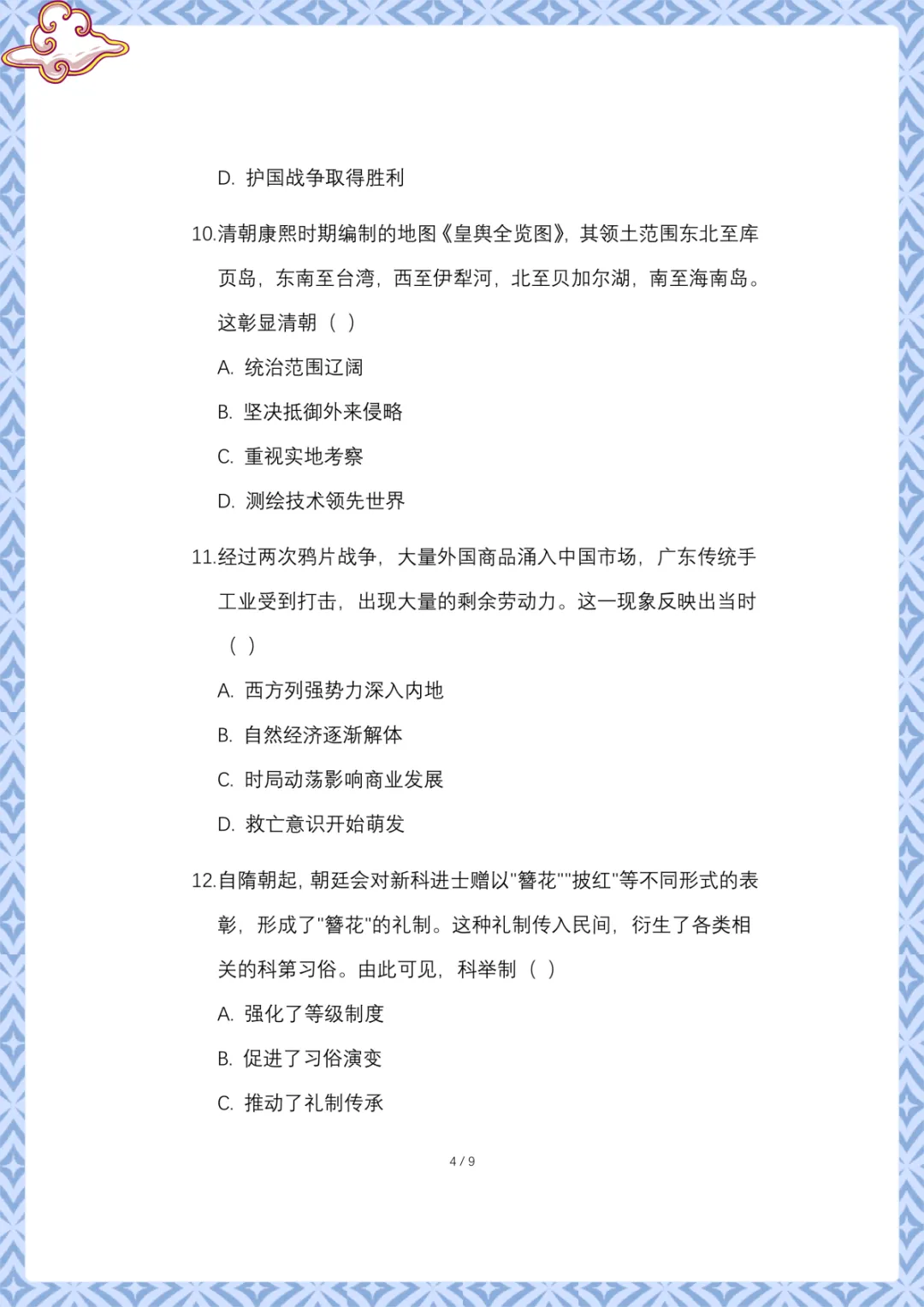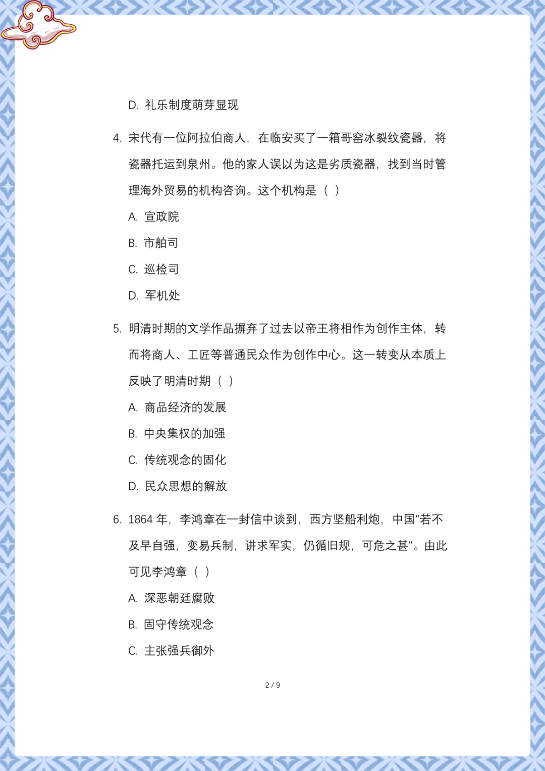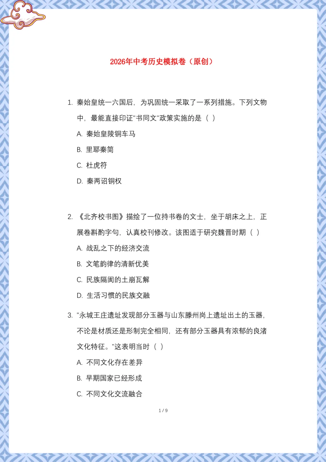 2026年中考历史:模拟卷原创 电子版可下载打印