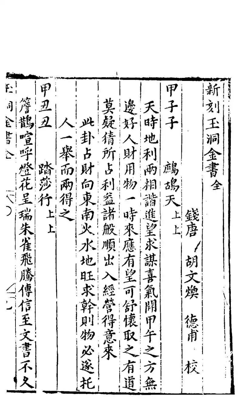 简介:《新刻玉洞金书》提供简易的占卜之法,分求财、音信、婚姻、出行、谒贵、丢失、逃亡、谋事、词讼、疾病、交易、孕产十二种,是大六壬衍生出来的小占卜术。