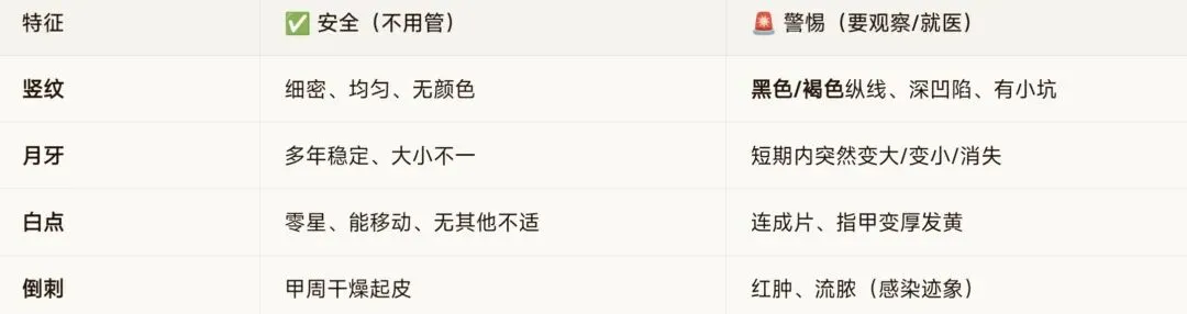 虽然竖纹、小月牙不用慌,但出现以下情况,建议及时去皮肤科看看: