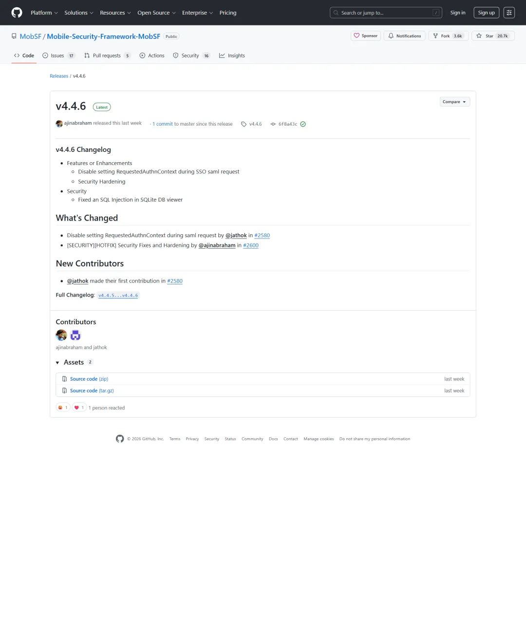 所以如果你真的打算把 MobSF 纳入团队工具链,关注 release 不是附加动作,而是必要动作。